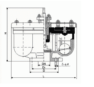 当需要排出管道内的气体时,应逆时针方向旋转阀杆,使其阀杆连同阀门上升,使管道内的空气在水的压强作用下进入体腔内,并从排气嘴排出,随之管道内的水充满体腔内,使浮球在水的浮力作用下,向上移动将排气嘴堵塞,达到自行密封,管道在正常行中,水中的空气在压强的作用下,不断排入排气阀的体腔上部,迫使浮球下降,离开原来密封位置,这时空气又从排气嘴排出,随之,浮球又恢复到原来位置自密封,因此,排气阀在正常工作中阀门始终是开着的,浮球不断重复上述动作,空气不断排出,当需要检修或清扫体腔时,应将阀门关闭。本排气阀,顺时针旋转阀杆时为关闭。