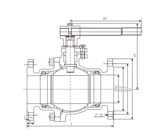 | DN(mm) | NPS(inch) | L | D | D1 | D2 | f | b | n-Φd | W | H |