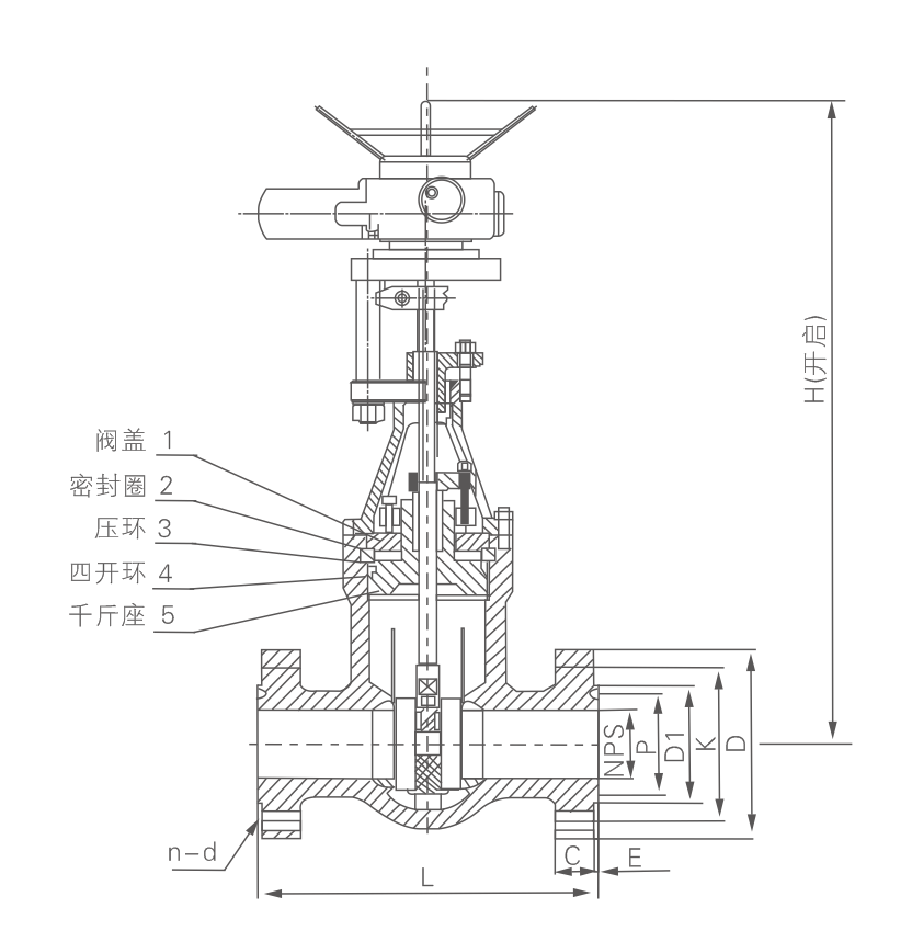 | NPS | DN | L | H | H1 | L1 | D0 | D | K | n-d | C | D | P | E | ||